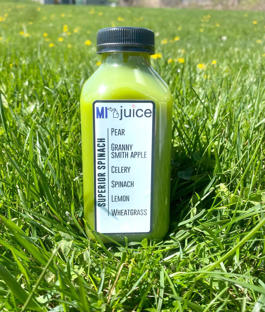 Frozen Superior Spinach (12 oz) Pear, Granny Smith Apple, Celery, Spinach, Lemon, Wheatgrass